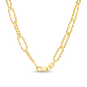 - This 18.25-inch paperclip chain necklace secures with a lobster claw clasp.